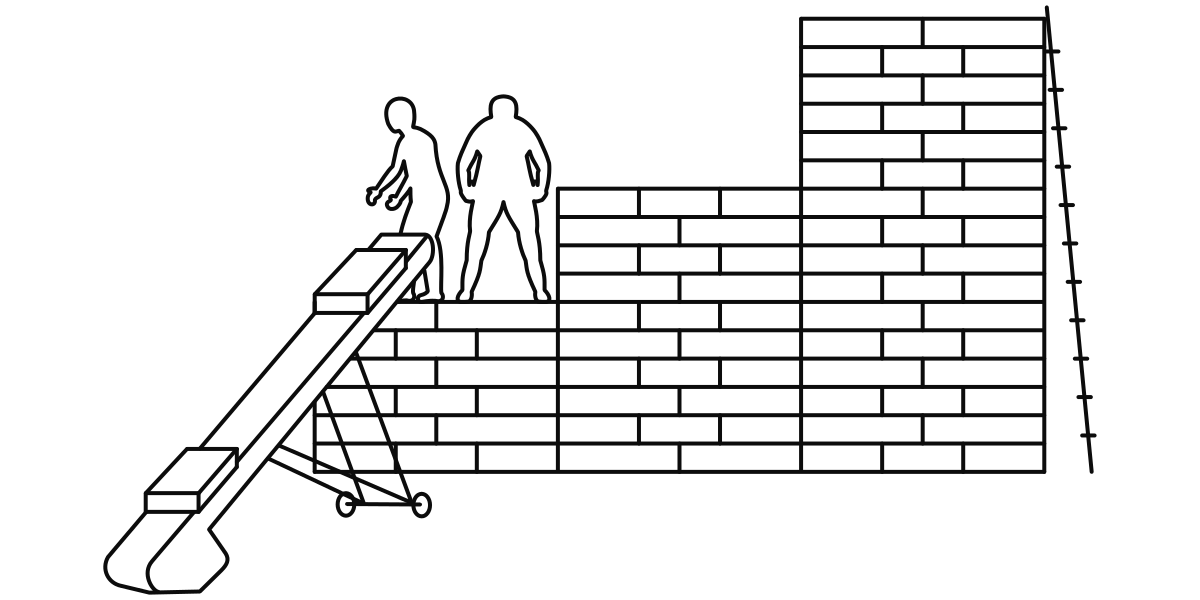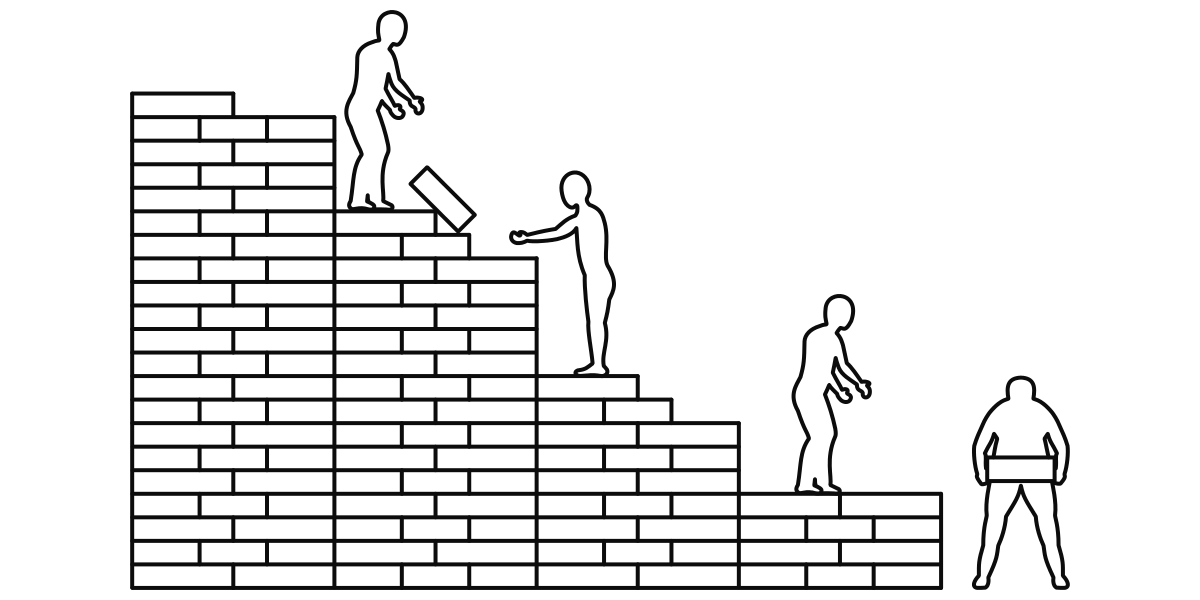上へ向かって垂直またはやや狭まるように*積み上げます。